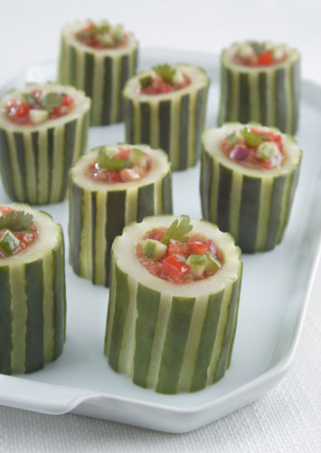 Spicy Smoked Gazpacho in Cucumber Cups