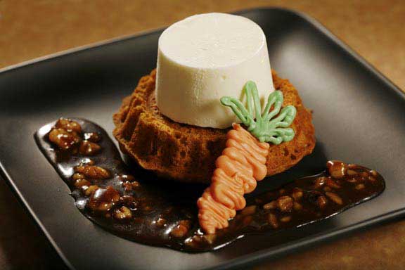 Individual Carrot Cakes with Cream Cheese Ice Cream and Praline Sauce