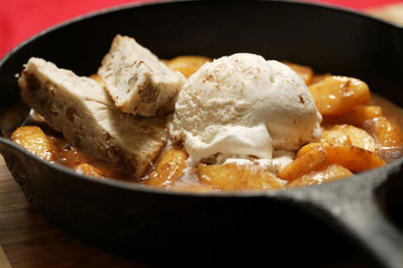Peaches Foster with Pecan Shortbread