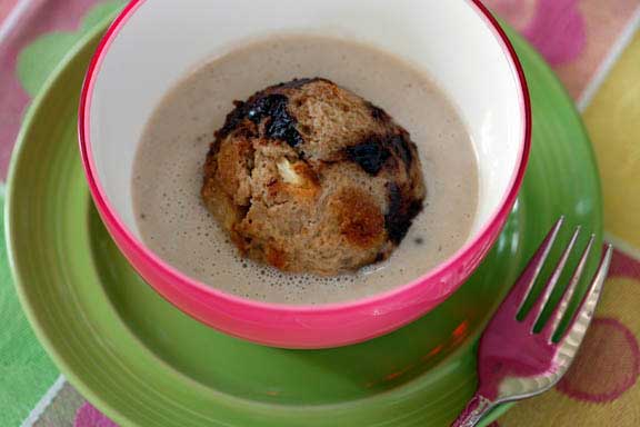 Banana-Coconut Soup with Floating Islands of Chocolate Bread Pudding