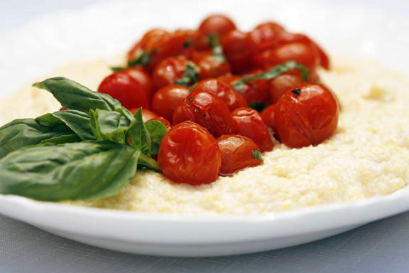 Mascarpone Polenta with Grape Tomato Sauce