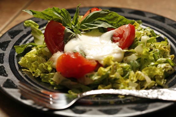 Warm Salad Caprese on Romaine Chiffonade