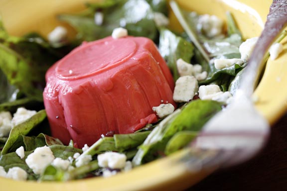 Cranberry "Panna Cotta" on Mixed Greens with Cranberry-Port Vinaigrette