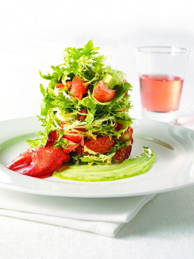 Baby Greens with Lobster, Avocado, Pink Grapefruit and Brown Sugar Bacon