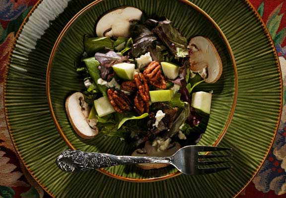Salad Greens with Pumpernickel Croutons, Shaved Parmesan and Pumpkin Seed Oil Vinaigrette