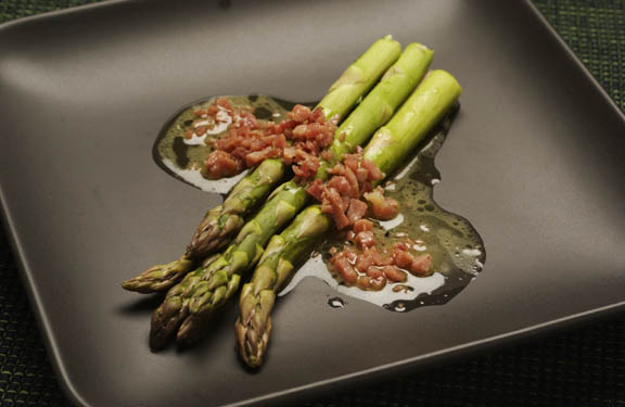 Warm Asparagus Salad with Country Ham Vinaigrette