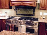 "A little over a year ago, my husband (Kevin) and I decided to build a new home. Not long after we met with our builder, we also determined that - to the best of our abilities - we would purchase American-made products. We searched several options, until we discovered Viking. We were directed to a local distributor, who is very familiar with the Viking line, and he met with us on several occasions. When we finally selected the items we wanted for our new kitchen, the distributor had them shipped to his local warehouse where he held them until we were ready for the installation. I will never forget the day when our Viking appliances were delivered. We had ordered the 60" gas free-standing range with double ovens. It was quite a challenge for the appliance crew, along with help from the onsite construction crew, to get the range into the house and moved into its place between two cherry cabinets and against a backsplash of pale, olive-green glass tiles. Then came the Viking refrigerator, the Viking dishwasher, the Viking micro-wave oven and finally the Viking wine cellar. All of our Viking appliances are impressive - and they fit perfectly into the "old world" theme we chose for our home. I have always loved to cook, and with the new range, it's a joy to spend time in the kitchen. Since Kevin and I grow a large garden, every fall I do lots of home canning. Needless to say, our Viking appliances will get plenty of use. Thanks to Viking, our kitchen really is impressive!"Rhonda Kaufman Moundsville, WV |
