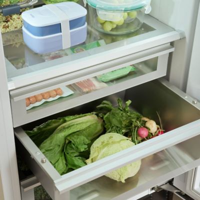 Repositionable shelves and door bins adapt easily to your storage needs, without ever leaving the rails. The Antibacterial Stainless Steel Drawers in this zone are bead-blasted to resist bacteria and germs. -
