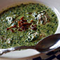 Oysters Rockefeller is a classic combination of oysters on the half shell bathed in a luscious green sauce, sprinkled with a little cheese and broiled until bubbly. Here, the combination of ingredients is simmered together for a soup that has all the flavor of the original dish. |