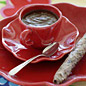 Dessert is a chocolate lover's dream. Blender Amaretto Pots de Crème are as simple as simmering some whipping cream and flipping the switch on my Viking blender. Amaretto liqueur gives these dense chocolate puddings a lovely almond flavor. A Mocha Java "Cigar" alongside is a nice touch, but if time is short, a simple fanned strawberry would make a lovely garnish.