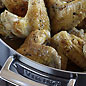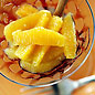 The menu starts with a delicious Chickpea Salad. Three savory small plates follow: Tiny Meatballs in Saffron Sauce, Garlic-Braised Chicken Wings and Shrimp with Romesco Sauce. For dessert, enjoy Oranges in Red Wine Syrup. Recipes: