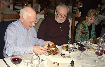 What did go perfectly with the duck was the ’98 Clos du Mont Olivet Chateauneuf-du-Pape. Brawny and stringent in its youth, nine years of aging, and two hours of decanting, rendered an opulent, powerful, full-bodied wine which held its own with the duck. On the palate was an impressive display of dark fruit, herbs, coffee, and pipe tobacco, and still-evident soft tannins supporting a firm structure. This pairing is a good illustration of the mutual evolution of the wines and cuisine of the Southern Rhone Valley over the centuries and how they complement one another.