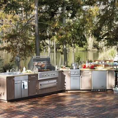 "The outdoor kitchen is born when the grill cozies up to cabinetry, countertops and indoor-style appliances-with refrigeration a must, says Michael Belforti of Better Housekeeping Shop. Until then, it's just a grill on a patio or deck.". Design NJ Magazine has several tips to be sure your outdoor kitchen space is ideal for prep, cooking and serving.