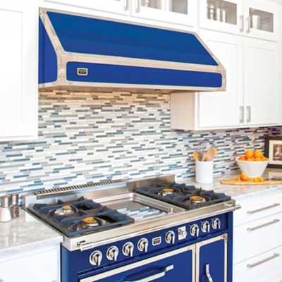 "Viking Range has launched ventilation hoods to complement its line of Tuscany Ranges. The new line of Italian Provencial ranges are available in 36" and 48" widths in various surface configurations. Color finishes for both the ranges and hoods include Dark Blue, Stainless, Graphite Black and Antique White." |