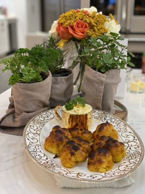 Glaze for Florets 5 tablespoons of honey Melt butter in a saute pan and add ingredients. After the cauliflower come out of the oven you can use a pastry brush to coat or toss the glaze and the cauliflower gently in a mixing bowl and put everything back on the racked pan and place back in oven for an additional 10 minutes at 450 degrees. You can also use broil for a minute to brown to your liking. Serve with the dipping sauce. Dipping Sauce 2 cups mayonnaise Combine all ingredients and Chill. |